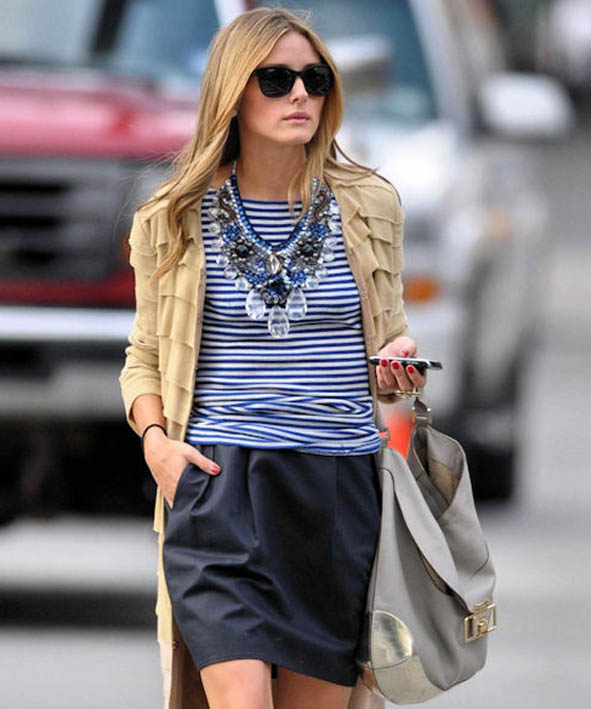 Bimba y Lola para este verano, una colección que rebosa estilo y colorido, como el collar que luce Olivia Palermo en la foto superior.